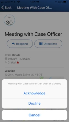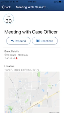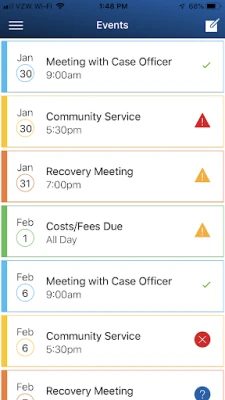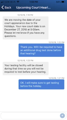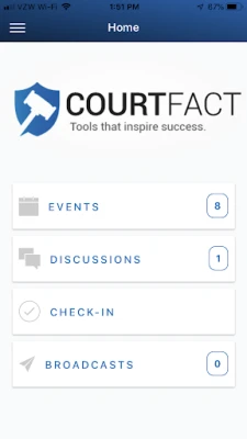 The CourtFact Mobile Application, when paired with the CourtFact Software Platform, allows private and government agencies to manage the flow of information for clients such as important appointments and events, costs, fees and due dates, secure messaging and periodic question-based communications.