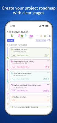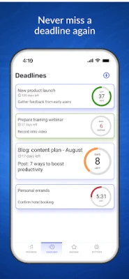 On the Deadlines screen, keep track of how much time is left until the completion of the next stage and the whole project.